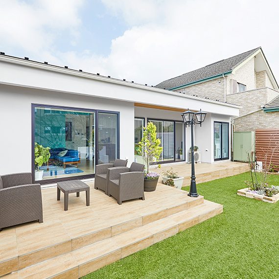 広いキッチン、テラス、そして庭。一つの敷地に様々な場所があることで暮らしに彩りがもたらされる。また、そんな空間の中で、「食」を暮らしの中心に置くことで、家族のコミュニケーションの絶えない空間設計を実現。何年経っても、この家で暮らし続けたいと思える。