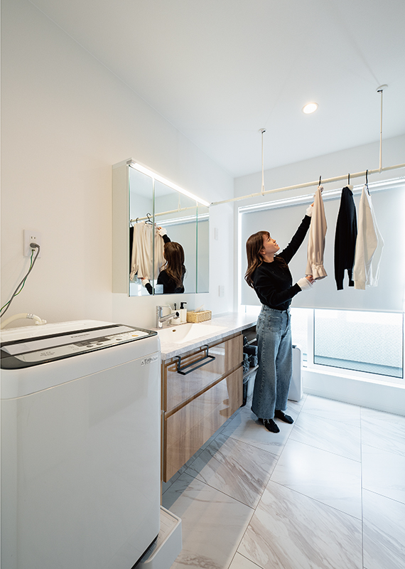 「生活動線を考慮した間取りと設備で家事効率がアップし毎日の暮らしに余裕が持てます。ストレスフリーだから、家で過ごす家族との時間をより楽しんでいます。」