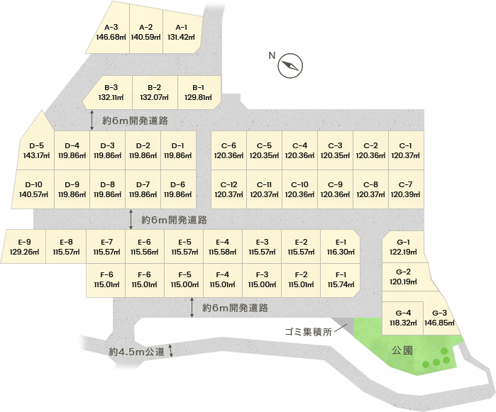 | 土地面積 | 115m2~146.85m2 (34.78坪~44.42坪)(実測) |